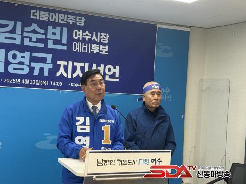 ÇÑÆí, À̳¯ ¿©¼ö½ÃÀå °æ¼±¿¡ Âü¿©Çß´ø ±è¼øºó Àü ÀÇ¿øÀÌ ´ç³» °øÁ¤ °ø¼±À» Ã˱¸ÇÏ¸ç ±è¿µ±Ô ¿¹ºñÈĺ¸ ÁöÁö¸¦ ¼±¾ðÇß´Ù.