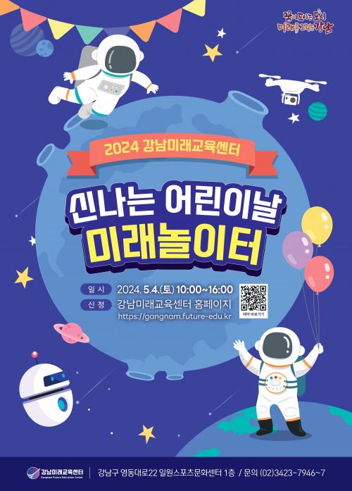 °­³²±¸(±¸Ã»Àå Á¶¼º¸í)°¡ ¾î¸°À̳¯À» ¸Â¾Æ ¿À´Â 5¿ù 4ÀÏ 10½Ã~16½Ã °­³²¹Ì·¡±³À°¼¾ÅÍ(¿µµ¿´ë·Î 22)¿¡¼­ °¡Á·µé°ú ÇÔ²² ¹Ì·¡±â¼úÀ» Áñ°Ì°Ô üÇèÇÒ ¼ö ÀÖ´Â ¹Ì·¡ ³îÀÌÅ͸¦ ¿î¿µÇÑ´Ù. ¹Ì·¡ ³îÀÌÅÍ´Â ÃʵîÇб³ 1~6Çгâ ÇлýÀ» ´ë»óÀ¸·Î 16Á¾ÀÇ ÇÁ·Î±×·¥°ú 6Á¾ÀÇ À̺¥Æ® µî¡¦