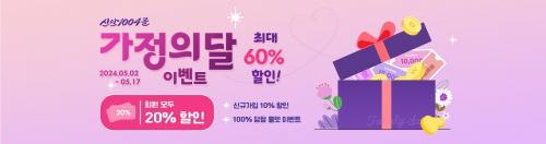 [½Åµ¿¾Æ¹æ¼Û=À̺´½Ä±âÀÚ] ¡®½Å¾È1004¸ô¡¯¿¡¼­ °¡Á¤ÀÇ ´ÞÀ» ¸Â¾Æ ¿À´Â 5¿ù 2ÀϺÎÅÍ 17ÀϱîÁö 16Àϰ£ ´ë±Ô¸ð ÇÒÀÎÇà»ç¸¦ ÁøÇàÇÑ´Ù. À̹ø °¡Á¤ÀÇ ´Þ ÇÒÀÎÇà»ç¿¡¼­´Â Àü »óǰÀ» ȸ¿ø 1Àδç 3¸Å, ÃÖ´ë 2¸¸¿ø±îÁö ÇÒÀÎ ¹ÞÀ» ¼ö ÀÖ´Â 20% ÄíÆùÀ» Áö±ÞÇÑ´Ù. 100% ´ç÷µÇ´Â¡¦