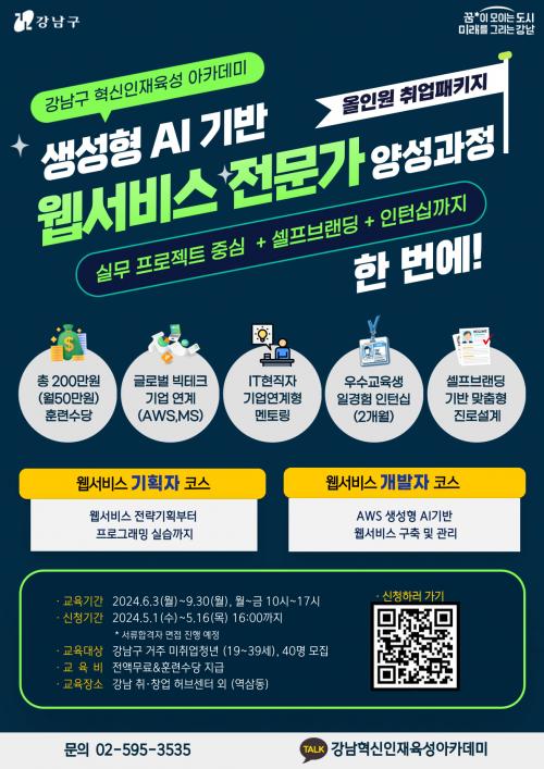 [½Åµ¿¾Æ¹æ¼Û °­³²±¸-À̽ŵ¿±âÀÚ]°­³²±¸°¡ ¿À´Â 6¿ù °³°­ÇÏ´Â Çõ½ÅÀÎÀç¾ç¼º ¾ÆÄ«µ¥¹Ì¿¡¼­ °­³²±¸ °ÅÁÖ ¹ÌÃë¾÷ û³â(19¼¼~39¼¼)À» ´ë»óÀ¸·Î »ý¼ºÇü AI ±â¹Ý À¥¼­ºñ½º Àü¹®°¡ °úÁ¤À» ¿î¿µÇÑ´Ù. °­³²±¸ Çõ½ÅÀÎÀçÀ°¼º ¾ÆÄ«µ¥¹Ì´Â û³â¿¡°Ô 4Â÷ »ê¾÷Çõ¸í, ÀΰøÁö´É, ºòµ¥¡¦