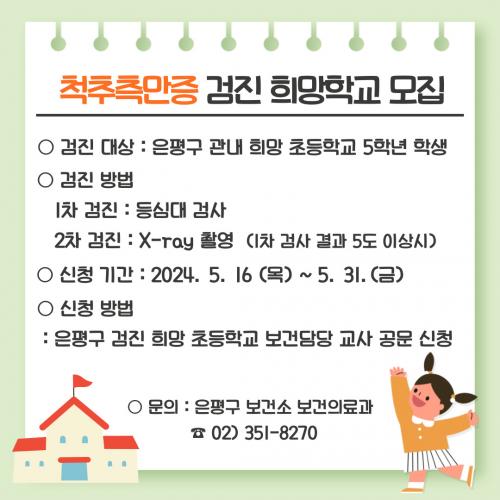 [½Åµ¿¾Æ¹æ¼Û ÀºÆò±¸=À̽ŵ¿±âÀÚ]ÀºÆò±¸´Â °ü³» 30°³ ÃʵîÇб³ 5Çгâ 3õ¿© ¸íÀ» ´ë»óÀ¸·Î ôÃßÃø¸¸Áõ °ËÁøÀ» Èñ¸ÁÇÏ´Â Çб³¿¡ ¹æ¹® °ËÁøÀ» ½ÃÇàÇÑ´Ù°í ¹àÇû´Ù. ôÃßÃø¸¸ÁõÀº ôÃß°¡ Ãø¸éÀ¸·Î ±Á¾îÁö°Å³ª SÀÚ È¤Àº CÀÚ ¸ð¾çÀ¸·Î ȸÀüµÈ Áõ»óÀÌ´Ù. »çÃá±â ÀüÈÄ ±Þ¼ºÀå±â¡¦