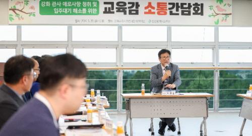 [½Åµ¿¾Æ¹æ¼Û ÀÎõ= À±¹Î½Ä±âÀÚ]µµ¼ºÈÆ ÀÎõ±¤¿ª½Ã±³À°°¨Àº 20ÀÏ ÀÎõ°­È­±³À°Áö¿øÃ» 4Ãþ ´ëȸÀǽǿ¡¼­ °­È­µµ ³» °ü»ç °ü¸® ¹× °ÅÁÖ ±³Á÷¿øÀÇ ¾Ö·Î»çÇ×°ú °ÇÀÇ »çÇ×À» ûÃëÇϰí À̸¦ ÇØ°áÇϱâ À§ÇØ ¼ÒÅë°£´ãȸ¸¦ ½Ç½ÃÇß´Ù. °£´ãȸ¿¡´Â °­È­µµ ³» °ü»ç °ü¸®ÀÚ¡¤°ÅÁÖÀÚ¡¦