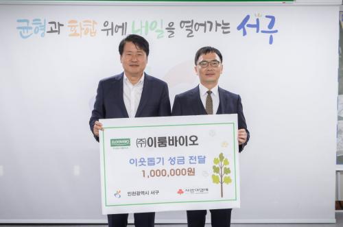 [½Åµ¿¾Æ¹æ¼Û ÀÎõ= À±¹Î½Ä±âÀÚ] ÀÎõ ¼­±¸(±¸Ã»Àå °­¹ü¼®)´Â Áö³­ 21ÀÏ, ¢ßÀÌ·ë¹ÙÀÌ¿À(´ëÇ¥ °í±Í¼ø, Á¶ÁøÇü)·ÎºÎÅÍ ÀÌ¿ôµ½±â ¼º±Ý 100¸¸¿øÀ» Àü´Þ¹Þ¾Ò´Ù°í ¹àÇû´Ù. 2020³â¿¡ ¼³¸³µÈ ¢ßÀÌ·ë¹ÙÀÌ¿À´Â Çѱ¹»ý¸í°øÇבּ¸¿øÀÇ Ä£È¯°æ ƯÇã±â¼úÀ» ÀÌÀü¹ÞÀº Â÷¼¼´ë ¿¡ÄÚ¡¦
