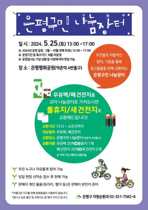 [½Åµ¿¾Æ¹æ¼Û ÀºÆò±¸=À̽ŵ¿±âÀÚ]ÀºÆò±¸´Â ¿À´Â 25ÀÏ ÀºÆòÆòÈ­°ø¿ø¿¡¼­ ¡®5¿ù ÀºÆò±¸¹Î ³ª´®ÀåÅÍ¡¯¸¦ °³ÃÖÇÑ´Ù°í ¹àÇû´Ù. ¡®ÀºÆò±¸¹Î ³ª´®ÀåÅÍ¡¯´Â ±¸¹ÎµéÀÌ Áß°í ÀçȰ¿ë ¹°Ç°ÀÎ ÀÇ·ù, Àå³­°¨, µµ¼­, ÀâÈ­ µîÀ» ¼­·Î ±³È¯ÇÏ°í ÆÇ¸ÅÇÏ´Â ³ª´®ÀÇ ÀåÀÌ´Ù. ÀÌ´Â ÀÚ¿ø ³¶ºñ¡¦