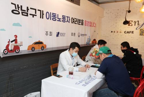 [½Åµ¿¾Æ¹æ¼Û °­³²±¸=À̽ŵ¿±âÀÚ]°­³²±¸°¡ ¿À´Â 30ÀÏ 9½Ã~16½Ã ÃæÇö±³È¸(Å×Çì¶õ·Î27±æ 40) º»°ü ¾Õ¸¶´ç¿¡¼­ À̵¿³ëµ¿ÀÚ ÇѹæÁø·á ¹× ÀÌ·ûÂ÷ ¹«»óÁ¡°ËÀ» ½Ç½ÃÇÑ´Ù. ÀÌ Çà»ç´Â À̵¿ÀÌ Àæ°í °íÁ¤µÈ ÈÞ°Ô°ø°£ÀÌ ¾ø´Â À̵¿³ëµ¿ÀÚÀÇ °Ç°­°ú ¾ÈÀüÀ» ÁõÁøÇϰíÀÚ ±âȹµÆ´Ù. ±×µ¿¡¦
