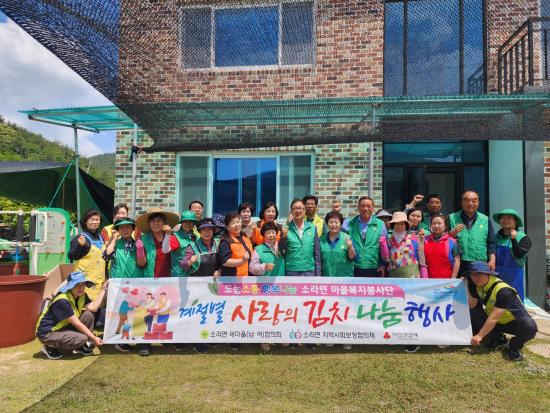 [½Åµ¿¾Æ¹æ¼Û¿©¼ö=±è±â³² ±âÀÚ] ¿©¼ö½Ã ¼Ò¶ó¸éÁö¿ª»çȸº¸ÀåÇùÀÇü(°øµ¿À§¿øÀå Á¤¿ë±æ, )¿Í ¼Ò¶ó¸é »õ¸¶À»³²³àÇùÀÇȸ(ȸÀå Â÷¼®Ã¶, Àå¹Ì¿ë)´Â Áö³­ 4ÀÏ »õ¸¶À»È¸¿ø µî 10°³ ¸¶À»º¹ÁöºÀ»ç´Ü 40¿©¸í°ú ÇÔ²² »ç¶ûÀÇ ¿­¹«±èÄ¡ ³ª´®Çà»ç¸¦ °³ÃÖÇÏ¿´´Ù. À̹ø Çà»ç´Â ¼Ò¶ó¡¦