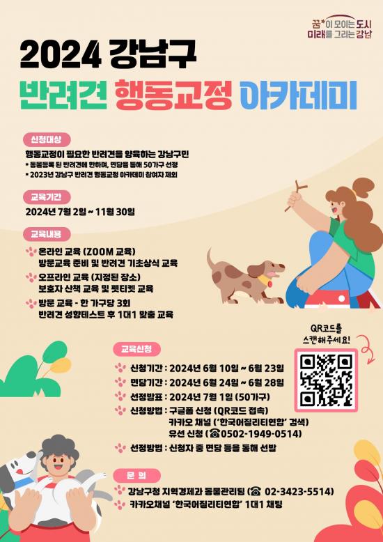 [½Åµ¿¾Æ¹æ¼Û °­³²±¸=À̽ŵ¿±âÀÚ]°­³²±¸°¡ ¹®Á¦ ÇൿÀ» º¸ÀÌ´Â ¹Ý·Á°ßÀ» Ű¿ì´Â °¡Á¤¿¡ Àü¹®ÈƷû簡 ¹æ¹®ÇØ ¹«·á·Î ±³À°ÇÏ´Â ¡®2024³â ¹Ý·Á°ß Çൿ±³Á¤ ¾ÆÄ«µ¥¹Ì(ÀÌÇÏ ¾ÆÄ«µ¥¹Ì)¡¯ Âü°¡ÀÚ¸¦ ¿À´Â 23ÀϱîÁö ¸ðÁýÇÑ´Ù. ±¸´Â ¸é´ã µîÀ» °ÅÃÄ 50°¡±¸À» ¼±¹ßÇØ 7¿ùºÎÅÍ 11¡¦