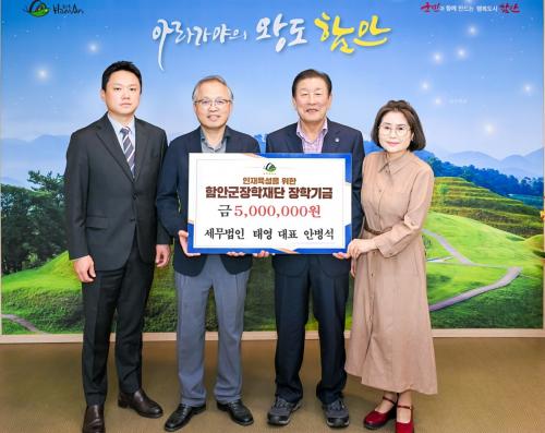 [½Åµ¿¾Æ¹æ¼Û ÇԾȱº=À̽ŵ¿±âÀÚ]¼¼¹«¹ýÀÎ Å¿µ(â¿ø½Ã ¸¶»êÇÕÆ÷±¸ »êÈ£µ¿ ¼ÒÀç) ¾Èº´¼® ´ëÇ¥´Â 10ÀÏ ÇԾȱºÃ»À» ¹æ¹®ÇØ Áö¿ªÀÎÀçÀ°¼ºÀ» À§ÇÑ ÀåÇбâ±Ý 500¸¸ ¿øÀ» ±º ÀåÇÐÀç´Ü¿¡ ±âŹÇß´Ù. À̳¯ ±âŹ½Ä¿¡´Â ¾Èº´¼® ´ëÇ¥¿Í °ü°èÀÚ°¡ Âü¼®ÇØ Áö¿ªÀÇ ±³À° ¹ßÀü°ú ÀÎÀç ¡¦