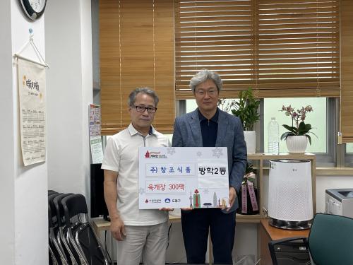 [½Åµ¿¾Æ¹æ¼Û µµºÀ±¸=À̽ŵ¿±âÀÚ]µµºÀ±¸ ¹æÇÐ2µ¿Àº 6¿ù 10ÀÏ Ã¢Á¶½Äǰ(´ëÇ¥ À̺À¸¸)À¸·ÎºÎÅÍ À°°³Àå 300ÆÑÀ» ÈÄ¿ø¹Þ¾Ò´Ù°í ¹àÇû´Ù. À̳¯ Àü´Þ¹ÞÀº À°°³ÀåÀº ¹æÇÐ2µ¿ Áö¿ª ³» Àú¼Òµæ °èÃþ¿¡ Àü´ÞµÆ´Ù. âÁ¶½ÄǰÀº °á½ÄÀÌ ¿ì·ÁµÇ´Â Àú¼Òµæ °èÃþÀ» À§ÇØ ¸Å³â ÈÄ¿ø¹°Ç°À»¡¦