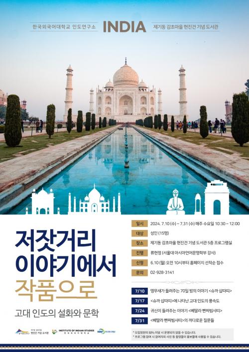 [½Åµ¿¾Æ¹æ¼Û µ¿´ë¹®±¸=À̽ŵ¿±âÀÚ]µ¿´ë¹®¹®È­Àç´Ü(´ëÇ¥ÀÌ»ç ±è°æ¿í) Á¦±âµ¿ °¨Ãʸ¶À» ÇöÁø°Ç ±â³ä µµ¼­°ü(ÀÌÇÏ µµ¼­°ü)¿¡¼­ °í´ë ÀεµÀÇ ¼³È­¿Í ¹®ÇÐÀ» ¹è¿öº¸´Â Àι®ÇÐ °­Á¸¦ ¿î¿µÇÑ´Ù. Çѱ¹¿Ü±¹¾î´ëÇб³ Àεµ¿¬±¸¼Ò¿Í Çù·ÂÇØ 7. 10.~7. 31.±îÁö ¸ÅÁÖ ¼ö¿äÀÏ µµ¼­°ü¡¦
