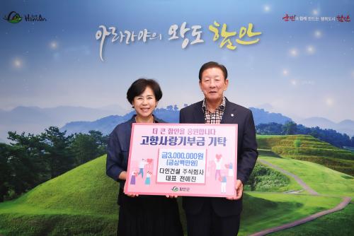 [½Åµ¿¾Æ¹æ¼Û ÇԾȱº=À̽ŵ¿±âÀÚ]ÇԾȱºÀº 20ÀÏ ´ÙÀΰǼ³ ÁÖ½Äȸ»ç ÀüÇýÁø ´ëÇ¥°¡ ÇԾȱº¿¡ °íÇâ»ç¶û±âºÎ±Ý 300¸¸ ¿øÀ» ±âŹÇß´Ù°í ¹àÇû´Ù. ÀüÇýÁø ´ëÇ¥´Â Ä¥¿øÀ¾ ¿ëÁ¤¸®¿¡¼­ ö±ÙÄÜÅ©¸®Æ®¾÷, Æ÷Àå°ø»ç¾÷, Åä°ø»ç¾÷ ¾÷Á¾ÀÎ ´ÙÀΰǼ³ ÁÖ½Äȸ»ç¸¦ °æ¿µÇϰí ÀÖ´Ù. Àü¡¦
