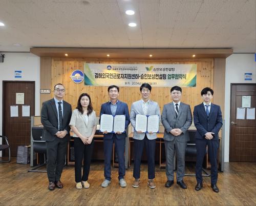 [½Åµ¿¾Æ¹æ¼Û´º½º=ÀÌÁ¶Àº±âÀÚ] ±èÇØ¿Ü±¹ÀαٷÎÀÚÁö¿ø¼¾ÅÍ´Â Áö³­ 17ÀÏ ³ë¹«¹ýÀÎ ½ÂÀÎ(´ëÇ¥ ±èÁ¤Çö)°ú ¿Ü±¹ÀαٷÎÀÚÀÇ ³ë¹«»ó´ãÀ» µ½±â À§ÇØ ¾÷¹«Çù¾àÀ» ü°áÇß´Ù. À̹ø Çù¾àÀº ¿Ü±¹ÀαٷÎÀÚÀÇ »ê¾÷ ÀçÇØ ¹ß»ý½Ã ¹«·á»ó´ã°ú »ê¾÷¾ÈÀü±³À°À» Áö¿øÇÏ´Â °ÍÀ» ÁÖ¿ä ³»¿ëÀ¸¡¦