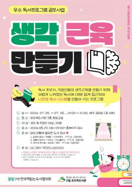 ÀºÆò±¸ Àº¶ß¶ôµµ¼­°ü, 2024³â ¿ì¼öµ¶¼­ÇÁ·Î±×·¥ °ø¸ð»ç¾÷ ¡®»ý°¢ ±ÙÀ° ¸¸µé±â¡¯ ¿î¿µ