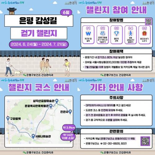 [½Åµ¿¾Æ¹æ¼Û ÀºÆò±¸=À̽ŵ¿±âÀÚ]ÀºÆò±¸´Â ¿À´Â 24ÀϺÎÅÍ ³»´Þ 21ÀϱîÁö ¡®ÀºÆò °¨¼º±æ °È±â 縰Áö¡¯¸¦ ÁøÇàÇÑ´Ù°í ¹àÇû´Ù. ¡®ÀºÆò °¨¼º±æ °È±â 縰Áö¡¯´Â ¡®2023 ¿ì¸® µ¿³× µ¿º° °È±â ÄÚ½º °ø¸ðÀü¡¯À» ÅëÇØ ¼±Á¤µÈ ÄÚ½º¸¦ ¹Ý¿µÇß´Ù. °È±â ÄÚ½º´Â ÃѰŸ® 3.9km·Î ±¸¡¦