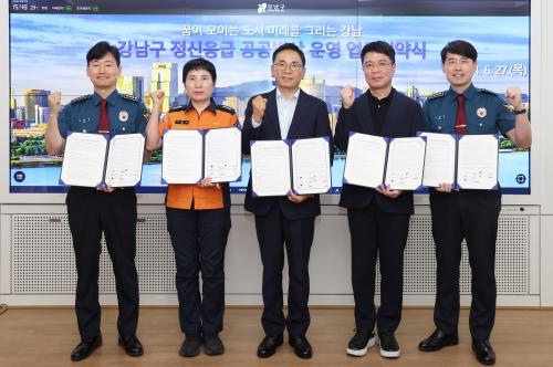 [½Åµ¿¾Æ¹æ¼Û °­³²±¸=À̽ŵ¿±âÀÚ]°­³²±¸°¡ 7¿ùºÎÅÍ 24½Ã°£ Á¤½ÅÀÀ±Þ °ø°øº´»óÀ» º»°ÝÀûÀ¸·Î ¿î¿µÇÑ´Ù. À̸¦ À§ÇØ Áö³­ 6¿ù 27ÀÏ ±¸Ã»¿¡¼­ ¸àÅ佺 º´¿ø(¿øÀå À±½ÂÇö), °­³²°æÂû¼­(¼­Àå ±èµ¿¼ö), ¼ö¼­°æÂû¼­(¼­Àå ±è⿵), °­³²¼Ò¹æ¼­(¼­Àå ±èÈï°ï)¿Í ¾÷¹«Çù¾àÀ» ü°áÇÏ°í ¡¦