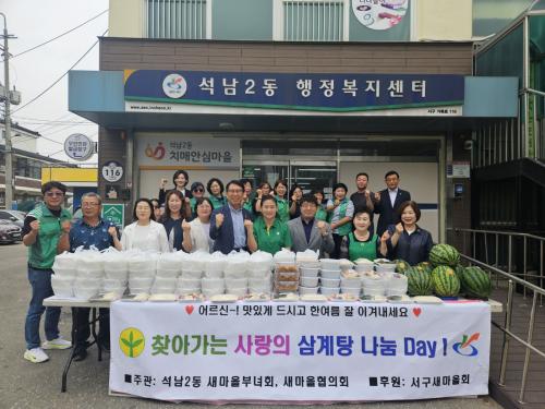 [½Åµ¿¾Æ¹æ¼Û ÀÎõ= À±¹Î½Ä±âÀÚ] ÀÎõ ¼­±¸ ¼®³²2µ¿ »õ¸¶À»ºÎ³àȸ(ȸÀå ½ÅÀÎÀÚ)´Â Áö³­ 7¿ù 12ÀÏ °ü³» °æ·Î´ç ¾î¸£½ÅµéÀÇ °Ç°­ÇÑ ¿©¸§³ª±â¸¦ À§ÇØ »ï°èÅÁ 100ÀκР³ª´® Çà»ç¸¦ ÁøÇàÇß´Ù. <@1> À̹ø Çà»ç´Â ¼®³²2µ¿ »õ¸¶À»ºÎ³àȸ¿øµéÀÌ ¼®³²2µ¿ ºÐȸ°æ·Î´çÀ» ºñ·ÔÇÑ¡¦
