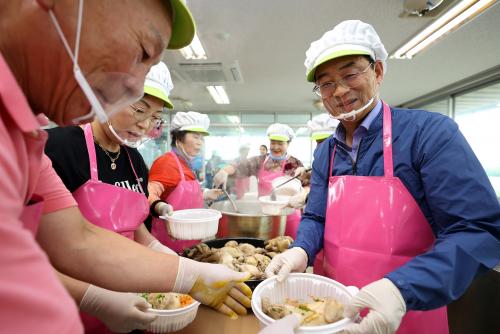 [½Åµ¿¾Æ¹æ¼Û°­Áø=¹Ú±¤¿Á±âÀÚ] °­Áø±º °­ÁøÀ¾Áö¿ª»çȸº¸ÀåÇùÀÇü(°øµ¿À§¿øÀå ¸¶±¹Áø. ±èµ¿ÀÏ)°¡ Ãʺ¹À» ¾ÕµÐ Áö³­ 12ÀÏ ½Ä»ç Áغñ¿¡ ¾î·Á¿òÀÌ ÀÖ´Â °Ç°­ Ãë¾à°èÃþ 100°¡±¸¸¦ À§ÇØ »ï°èÅÁ ³ª´® Çà»ç¸¦ °¡Á³´Ù. À̳¯ Çà»ç´Â Ãë¾à°èÃþÀÇ °Ç°­ÇÑ ¿©¸§³ª±â Áö¿ø »ç¾÷ÀÇ ÀÏ¡¦