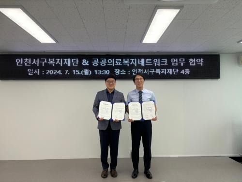 [½Åµ¿¾Æ¹æ¼Û ÀÎõ= À±¹Î½Ä±âÀÚ] ÀÎõ¼­±¸º¹ÁöÀç´Ü(ÀÌ»çÀå °­¹ü¼®)°ú °ø°øÀǷẹÁö³×Æ®¿öÅ©(´ëÇ¥ ±è¼º±¹)´Â ³×Æ®¿öÅ© ±¸ÃàÀ» ÅëÇØ ã¾Æ°¡´Â ÀÇ·á¼­ºñ½º¸¦ Á¦°øÇϱâ À§ÇÑ ¾÷¹«Çù¾àÀ» ü°áÇß´Ù. À̹ø Çù¾àÀ» ÅëÇÏ¿© ¼­±¸ ±¸¹ÎÀ» À§ÇÑ ÀÇ·áÁö¿ø, ¹°Ç° ÈÄ¿ø µî ´Ù¾çÇÑ¡¦