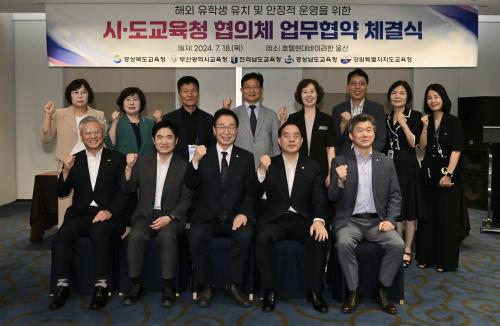 [½Åµ¿¾Æ¹æ¼Û=À̽ŵ¿±âÀÚ] Àü¶ó³²µµ±³À°Ã»(±³À°°¨ ±è´ëÁß)ÀÌ 18ÀÏ È£ÅÚÇö´ë ¹ÙÀÌ ¶óÇÑ ¿ï»ê¿¡¼­ °æºÏ±³À°Ã», °æ³²±³À°Ã», °­¿ø±³À°Ã», ºÎ»ê±³À°Ã» µî 4°³ ±³À°Ã»°ú Áö¼ÓÀûÀÎ ÇØ¿Ü À¯Çлý À¯Ä¡ ¹× °øµ¿ ¼öÇàÀ» À§ÇÑ ¾÷¹«Çù¾àÀ» ü°áÇß´Ù. 5°³ ±³À°Ã»Àº ÀÌ Çù¾àÀ» ÅëÇØ¡¦