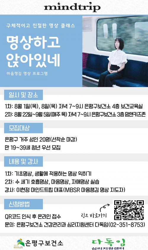 [½Åµ¿¾Æ¹æ¼Û=À̽ŵ¿±âÀÚ] ÀºÆò±¸(±¸Ã»Àå ±è¹Ì°æ)´Â ±¸¹ÎÀ» À§ÇÑ Æ¯º°ÇÑ ¸¶À½Ã¬±è ¸í»ó ÇÁ·Î±×·¥ÀÎ ¡®¸í»óÇÏ°í ¾É¾ÆÀֳס¯¸¦ Á¢¼öÇϰí ÀÖ´Ù°í ¹àÇû´Ù. ¡®¸¶À½Ã¬±è ¸í»ó¡¯Àº ±¸¹ÎµéÀÌ Àϻ󿡼­ ½ºÆ®·¹½º¸¦ °ü¸®ÇÏ°í ½É¸®Àû ¾ÈÁ¤À» ãÀ» ¼ö ÀÖµµ·Ï µ½°íÀÚ ÁøÇàµÈ´Ù. À̴¡¦