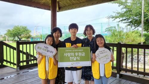 [½Åµ¿¾Æ¹æ¼Û = À±¹Î½Ä±âÀÚ] ±Â³×À̹ö½º °æ±â³²ºÎ»ç¾÷º»ºÎ(º»ºÎÀå ¾çÀç¸í)´Â °³Á¤ÃʵîÇб³(±³Àå Á¤¹Ì¼±)¿Í ÇÔ²² »ç¶ûÀÇ ÈÄ¿ø±Ý Àü´Þ½ÄÀ» ÁøÇàÇß´Ù°í 29ÀÏ ¹àÇû´Ù. °³Á¤ÃʵîÇб³¿¡¼­´Â ¾È¼º½ÃÀÇ ³ì»öÀåÅÍ »ç¾÷°ú ¿¬°èÇÏ¿© Çлý°ú ÇкθðÀÇ ÀÚ¿øºÀ»ç·Î ÁøÇàÇÑ ¡®Áö±¸¡¦