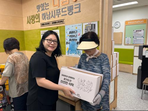 [½Åµ¿¾Æ¹æ¼Û=À̽ŵ¿±âÀÚ]Çϳ²½ÃǪµå¹ðÅ©(´ëÇ¥ ÀÌÁ¡º¹)´Â Áö³­ 8¿ù 1ÀÏ(¼ö) À̸¶Æ® ¡®½Å¼±ÇÑ ½ÄŹ¡¯ »ç¾÷ÀÇ °æ±âµµ»ê ģȯ°æ ³ó»ê¹° ²Ù·¯¹Ì¸¦ Áö¿ø¹Þ¾Æ °ü³» Àú¼Òµæ Ãë¾à°èÃþ 100°¡±¸¿¡°Ô Àü´ÞÇß´Ù. ¡®½Å¼±ÇÑ ½ÄŹ¡¯ »ç¾÷Àº °æ±â³ª´®Çªµå¹ðÅ©°¡ ÁÖ½Äȸ»ç À̸¶Æ®ÀÇ ÈÄ¿ø¡¦