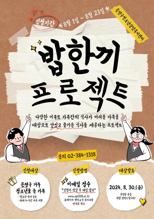 [½Åµ¿¾Æ¹æ¼Û=À̽ŵ¿±âÀÚ] ÀºÆò±¸(±¸Ã»Àå ±è¹Ì°æ)´Â ´Ù¾çÇÑ ÀÌÀ¯·Î °¡Á· °£ÀÇ ½Ä»ç°¡ ¾î·Á¿î °¡Á·À» ´ë»óÀ¸·Î ½Ä»ç¸¦ Á¦°øÇÏ´Â ¡®¹äÇѳ¢ ÇÁ·ÎÁ§Æ®¡¯¸¦ ÁøÇàÇÑ´Ù°í ¹àÇû´Ù. Áö¿ø ¹°Ç°Àº ¾Ö½¶¸®ÄýÁî ·Ôµ¥¸ô ÀºÆòÁ¡ ½Ä»ç±ÇÀ¸·Î, 1°¡±¸´ç ÃÖ´ë 10¸¸ ¿øÀ» Áö¿øÇÑ´Ù. ´Ü, Áö¡¦