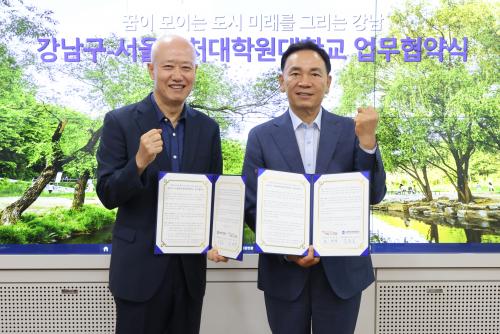 [½Åµ¿¾Æ¹æ¼Û=À̽ŵ¿±âÀÚ] ²ÞÀÌ ¸ðÀÌ´Â µµ½Ã, ¹Ì·¡¸¦ ±×¸®´Â °­³²±¸(±¸Ã»Àå Á¶¼º¸í)°¡ 12ÀÏ ±¸Ã»¿¡¼­ ¼­¿ïº¥Ã³´ëÇпø´ëÇб³(ÃÑÀå ±èÃáÈ£)¿Í ¡®Ãë‧â¾÷ ÀÎÇÁ¶ó È®»ê ¹× ±Û·Î¹ú ±â¾÷°¡ ¾ç¼ºÀ» À§ÇÑ ¾÷¹« Çù¾à¡¯À» ü°áÇß´Ù. À̹ø Çù¾àÀ» ¹ÙÅÁÀ¸·Î ¾ç ±â°üÀº â¾÷¡¦