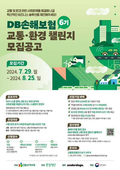 [½Åµ¿¾Æ¹æ¼Û=À̽ŵ¿±âÀÚ]ȯ°æÀç´Ü(ÀÌ»çÀå ÃÖ¿­)Àº DB¼ÕÇØº¸Çè°ú ÇÔ²² ±³Å롤ȯ°æºÐ¾ß ¼Ò¼Èº¥Ã³ â¾÷±â¾÷ ÇÁ·Î±×·¥ ¡®±³Å롤ȯ°æÃ§¸°Áö 6±â¡¯ Âü¿©ÆÀÀ» ¸ðÁýÁßÀÌ´Ù. DB¼ÕÇØº¸Çè ±³Å롤ȯ°æÃ§¸°Áö´Â ±³Å롤ȯ°æºÐ¾ß¿¡ Çõ½ÅÀûÀÎ ºñÁî´Ï½º ¼Ö·ç¼ÇÀ» º¸À¯ÇÑ ¼Ò¼Èº¥Ã³¸¦ ¹ß±¼,¡¦