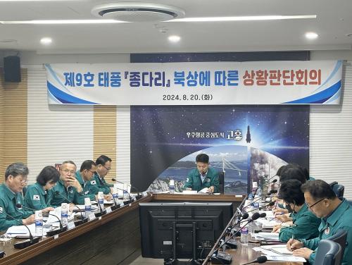 [½Åµ¿¾Æ¹æ¼Û°íÈï=¹Ú±¤¿Á±âÀÚ] °íÈﱺ(±º¼ö °ø¿µ¹Î)Àº Á¦9È£ ÅÂdz¡®Á¾´Ù¸®¡¯ ºÏ»ó¿¡ µû¸¥ ¼±Á¦ ´ëÀÀÀ» À§ÇØ 20ÀÏ ¿ÀÀü 10½Ã ±ºÃ» Èï¾çȦ¿¡¼­ »óȲÆÇ´ÜȸÀǸ¦ °³ÃÖÇß´Ù. Á¶´ëÁ¤ ºÎ±º¼ö°¡ ÁÖÀçÇÑ È¸ÀÇ¿¡´Â ½Ç°ú¼ÒÀåÀ» ºñ·ÔÇØ À¾¡¤¸éÀåÀÌ Âü¿©ÇÑ °¡¿îµ¥ ÅÂdz ÇÇÇØ ÃÖ¼ÒÈ­¡¦