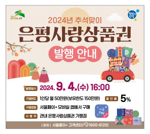 [½Åµ¿¾Æ¹æ¼Û=À̽ŵ¿±âÀÚ]ÀºÆò±¸(±¸Ã»Àå ±è¹Ì°æ)´Â Ãß¼® ¸íÀýÀ» ¸Â¾Æ 80¾ï ¿ø ±Ô¸ðÀÇ ÀºÆò»ç¶û»óǰ±ÇÀ» ³»´Þ 4ÀÏ¿¡ 5% ÇÒÀÎµÈ ±Ý¾×À¸·Î ÆÇ¸ÅÇÑ´Ù°í ¹àÇû´Ù. À̹ø Ãß¼® ¸ÂÀÌ ÀºÆò»ç¶û»óǰ±ÇÀº 9¿ù 4ÀÏ ¿ÀÈÄ 4½ÃºÎÅÍ ±¸¸ÅÇÒ ¼ö ÀÖ´Ù. ±¸¸Å Çѵµ´Â 1ÀÎ´ç ¿ù 50¸¸ ¿ø±îÁö ¡¦
