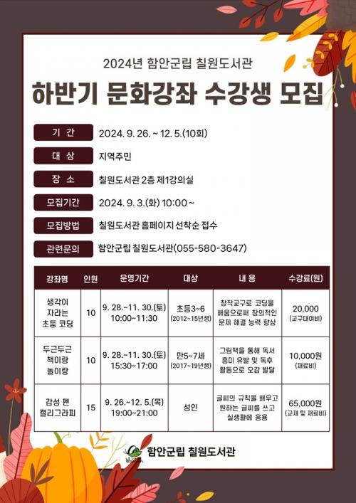 ÇԾȱº¸³ Ä¥¿øµµ¼­°ü, 2024³â ÇϹݱ⠹®È­°­Á ¼ö°­»ý ¸ðÁý