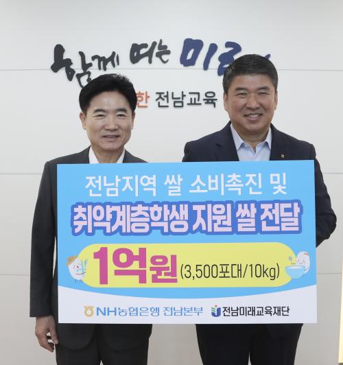 [½Åµ¿¾Æ¹æ¼Û=À̽ŵ¿±âÀÚ] NH³óÇùÀºÇà Àü³²º»ºÎ(º»ºÎÀå Á¤ÀçÇå)´Â 9ÀÏ(¿ù) Àü³²¹Ì·¡±³À°Àç´Ü(ÀÌ»çÀå ±è´ëÁß)À» ¹æ¹®ÇØ 1¾ï ¿ø¾îÄ¡ÀÇ Áö¿ª ½ÒÀ» ±âŹÇß´Ù. À̹ø ½Ò ±âŹÀº NH³óÇùÀºÇà Àü³²º»ºÎ°¡ Àü³²¿¡ ÀçÇÐ ÁßÀÎ Ãë¾à°èÃþ ÇлýµéÀ» Áö¿øÇϰí, Àü³²Áö¿ªÀÇ ½Ò ¼Òºñ¸¦¡¦