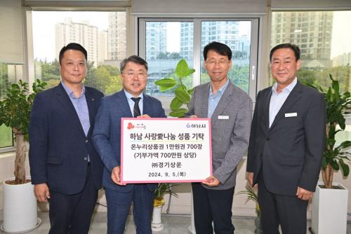 [½Åµ¿¾Æ¹æ¼Û=À̽ŵ¿±âÀÚ]Áö³­ 5ÀÏ ¢ß°æ±â»ó¿îÀº Çϳ² »ç¶ûäñ³ª´®À¸·Î ¼ºÇ°(¿Â´©¸®»óǰ±Ç 700¸¸¿ø)À» ±âŹÇÏ¸ç ±âŹ½ÄÀ» °¡Á³´Ù. À̳¯ ±âŹ½Ä¿¡´Â ȲÇпë Çϳ²ºÎ½ÃÀåÀ» ºñ·ÔÇÏ¿© ¢ß°æ±â»ó¿î Çã´öÇà »ó¹«ÀÌ»ç, Á¶Àλó °úÀå, ¼®½ÂÈ£ ±³Åë°Ç¼³±¹Àå µîÀÌ Âü¿©ÇÏ¿© ÀÚ¸®¸¦¡¦