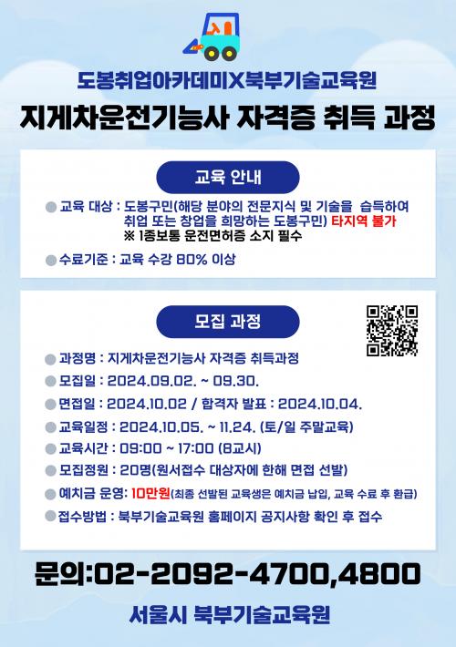 [½Åµ¿¾Æ¹æ¼Û=À̽ŵ¿±âÀÚ] µµºÀ±¸(±¸Ã»Àå ¿À¾ð¼®)°¡ 50´ë ÀÌ»ó Áß‧Àå³âÃþ Ưȭ±³À° ¡®Áö°ÔÂ÷¿îÀü±â´É»ç ÀÚ°Ý Ãëµæ°úÁ¤¡¯À» ¿î¿µÇÑ´Ù. Áö°ÔÂ÷¿îÀü±â´É»ç´Â °Ç¼³±â°è Á¶Á¾¸éÇã Áß Çϳª·Î, ¸Å³â Ãëµæ·üÀÌ ³ô°í °Ç¼³¡¤Á¦Á¶¾÷ü³ª ¿î¼Û¾÷ü µî ¸¹Àº ±â¾÷¿¡¼­ ÇÊ¿ä·Î¡¦