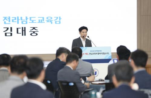 [½Åµ¿¾Æ¹æ¼Û=ÀÌ¿ø¼º±âÀÚ] Àü¶ó³²µµ±³À°Ã»(±³À°°¨ ±è´ëÁß)ÀÌ 9¿ù 12ÀÏ(¸ñ) û»ç ´ëȸÀǽǿ¡¼­ 2024³â 9¿ù Á¤Ã¥ÇùÀÇȸ¸¦ °®°í ¡®K-¿¡µà¡¯ ½Ã´ë¸¦ ¿­¾î°¥ Àü³²±³À° Á¤Ã¥ ½ÇÇö ¹æ¾ÈÀ» ³íÀÇÇß´Ù. À̳¯ Âü¼®ÇÑ º»Ã» °úÀå, 12°³ Á÷¼Ó±â°üÀå°ú 22°³ ½Ã¡¤±º ±³À°Àå 60¿© ¸íÀº ¡¦