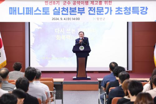 [½Åµ¿¾Æ¹æ¼Û=À̽ŵ¿±âÀÚ]ÇԾȱºÀº 4ÀÏ ±ºÃ» 3Ãþ ´ëȸÀǽǿ¡¼­ Á¶±ÙÁ¦ ÇԾȱº¼ö¸¦ ºñ·ÔÇÑ °ø¾à´ã´ç µî 90¿© ¸íÀ» ´ë»óÀ¸·Î ¹Î¼±8±â ±º¼ö °ø¾à»ç¾÷ ÀÌÇà·ü Çâ»óÀ» À§ÇÑ ¸Å´ÏÆä½ºÅä Àü¹®°¡ ÃÊû Ư°­À» °³ÃÖÇß´Ù. À̹ø Ư°­Àº Çѱ¹¸Å´ÏÆä½ºÅä½Çõº»ºÎ À̱¤Àç »ç¹«ÃÑÀåÀ»¡¦