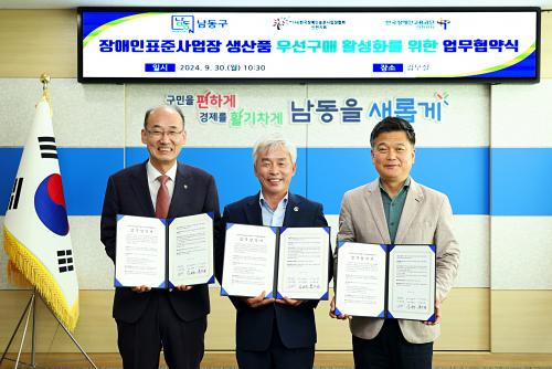 [½Åµ¿¾Æ¹æ¼Û ÀÎõ= À±¹Î½Ä±âÀÚ] ÀÎõ½Ã ³²µ¿±¸¿Í (»ç)Çѱ¹Àå¾ÖÀÎÇ¥ÁØ»ç¾÷ÀåÇùȸ ÀÎõÁöȸ(ȸÀå ±è¿µÈÆ), Çѱ¹Àå¾ÖÀΰí¿ë°ø´Ü ÀÎõÁö»ç(Áö»çÀå È«µÎÇ¥)Àº Àå¾ÖÀÎÇ¥ÁØ»ç¾÷Àå »ý»êǰ ¿ì¼±±¸¸Å Ȱ¼ºÈ­¸¦ À§ÇÑ ¾÷¹«Çù¾àÀ» ü°áÇß´Ù°í 4ÀÏ ÀüÇß´Ù. À̹ø Çù¾àÀº Àå¾ÖÀÎÀÇ¡¦