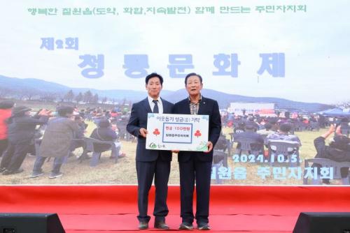 [½Åµ¿¾Æ¹æ¼Û °æ³²ÇÔ¾È=À̽ŵ¿±âÀÚ] ÇԾȱº Ä¥¿øÀ¾ÁÖ¹ÎÀÚġȸ(ȸÀå ¾Èº´È£)´Â Áö³­ 5ÀÏ Ä¥¿øÀ¾ ±¤·Áõ Àܵ𸶴翡¼­ ¿­¸° Á¦2ȸ û·æ¹®È­Á¦ °³ÃÖ¸¦ ±â³äÇÏ¸ç ¾î·Á¿î ÀÌ¿ôµ½±â ¼º±Ý 100¸¸¿øÀ» ±âŹÇß´Ù. ȸ¿øµéÀÌ Á¤¼ºÀ» ¸ð¾Æ ±âŹÇÑ ¼º±ÝÀº Áö¿ª ³» µµ¿òÀÌ ÇÊ¿äÇÑ Àú¡¦