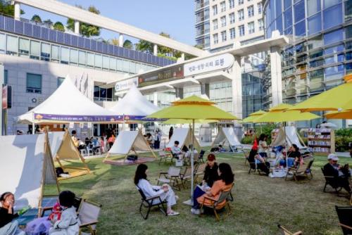[½Åµ¿¾Æ¹æ¼Û µµºÀ±¸=À̽ŵ¿±âÀÚ] 10¿ù 12ÀÏ ¿ÀÈÄ µµºÀ±¸Ã» ±¤Àå¿¡ Á¶¼ºµÈ ¾ß¿Üµµ¼­°ü¿¡¼­ ±¸¹ÎµéÀÌ Ã¥À» Àаí ÀÖ´Ù. ¾Õ¼­ ±¸´Â ±¸Ã» ±¤ÀåÀ» Ã¥Àд °ø°£À¸·Î Å»¹Ù²ÞÇß´Ù. À̰÷¿¡´Â ¿¬·É´ëº°, ÁÖÁ¦º°·Î ÃÑ 1,800¿© ±ÇÀÇ Ã¥ÀÌ ±¸ºñµÆÀ¸¸ç, ÆíÈ÷ Ã¥À» ÀÐÀ» ¼ö ÀÖ´Â AÇü ÅÙÆ®¡¦