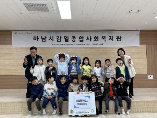 [½Åµ¿¾Æ¹æ¼Û Çϳ²½Ã=À̽ŵ¿±âÀÚ] Çϳ²½Ã°¨ÀÏÁ¾ÇÕ»çȸº¹Áö°ü¿¡¼­ ½Ã¸³°¨Àϸ®Æ²Æ÷·¹¾î¸°ÀÌÁý°ú ÇÔ²² Áö³­ 10¿ù 28ÀÏ ÈÄ¿ø±Ý Àü´Þ½ÄÀ» °¡Á³´Ù. À̳¯ Àü´ÞµÈ ÈÄ¿ø±ÝÀº ½Ã¸³°¨Àϸ®Æ²Æ÷·¹¾î¸°ÀÌÁý¿¡¼­ <¶Ç¶û¶Ç¶û ¾Æ³ª¹Ù´Ù ¹ÙÀÚȸ>¸¦ ÁøÇàÇØ ¾òÀº ¼öÀͱÝÀ¸·Î, 50¸¸¿øÀÇ ÈÄ¿ø¡¦