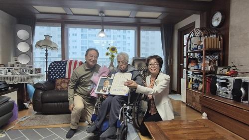 <@1> [½Åµ¿¾Æ¹æ¼Û=³²±Ã¿µ±â ±âÀÚ] ±èÇØ½Ã´Â Áö³­ 4ÀÏ, ͺ¹éÀç°æ º´Àå À¯Á· °¡Á¤¿¡ ¹æ¹®ÇÏ¿© ±¹¹æºÎÀå°üÀ» ´ë½ÅÇØ È­¶û¹«°øÈÆÀåÀ» Àü¼öÇß´Ù. À¯°øÀÚ´Â ÀüÀï ¹ß¹ß ÈÄ ÇõÇõÇÑ Àü°øÀ» ¼¼¿üÀ½¿¡µµ 6¡¤25 ÀüÀï ÀüÈÄ È¥¶õÇÑ »óȲ¿¡ ÈÆÀåÀ» ¹ÞÁö ¸øÇßÀ¸³ª, ±¹¹æºÎ¿Í À°±º¡¦