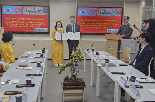 [½Åµ¿¾Æ¹æ¼Û °­Áø±º=À̽ŵ¿±âÀÚ] °­Áø°íµîÇб³°¡ º£Æ®³² ȣġ¹Î½ÃÀÇ ¸í¹® Hung Vuong°íµîÇб³¿Í ¼ÕÀ» ¸ÂÀâ°í ±Û·Î¹ú ÀÎÀç ¾ç¼ºÀ» À§ÇÑ »õ·Î¿î µµ¾àÀ» ½ÃÀÛÇß´Ù. Áö³­ 10¿ù 31ÀÏ, HungVuong°íµîÇб³ ±³ÀåÀ» ºñ·ÔÇÑ ±³»ç 5¸í, Çлý 5¸í, º£Æ®³² Çѱ¹¾î±³À°¿ø °ü°èÀÚ 3¸íÀ¸¡¦