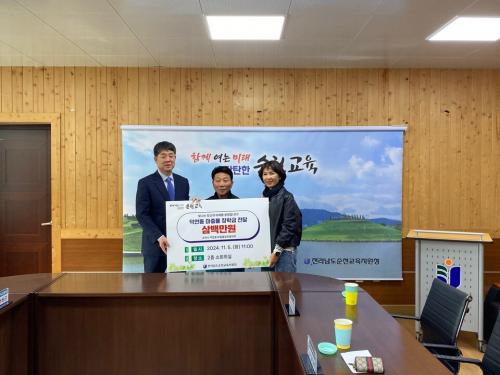 [½Åµ¿¾Æ¹æ¼Û ¼øÃµ½Ã=À̽ŵ¿±âÀÚ] Àü¶ó³²µµ ¼øÃµ±³À°Áö¿øÃ»Àº 11¿ù 5ÀÏ ÀåÇÐ±Ý Àü´Þ½ÄÀ» ÁøÇàÇÏ¿´´Ù. À̹ø ÀåÇбÝÀº ´ö¿¬µ¿¸¶Áß¹°º¸ÀåÇùÀÇü ȸ¿øµéÀÌ ¶æÀ» ¸ð¾Æ Ãë¾à°èÃþ ÇлýµéÀÇ ºû³ª´Â ¹Ì·¡¸¦ ÀÀ¿øÇϱâ À§ÇÏ¿© ÀåÇбÝÀ» ±âŹÇß´Ù°í ÀüÇß´Ù. ´ö¿¬µ¿¸¶Áß¹°º¸ÀåÇù¡¦