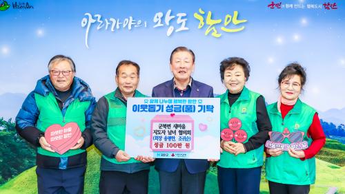 [½Åµ¿¾Æ¹æ¼Û °æ³²ÇÔ¾È=À̽ŵ¿±âÀÚ] ÇԾȱºÀº ±ººÏ¸é »õ¸¶À»ÁöµµÀÚ ³²³àÇùÀÇȸ°¡ Áö³­ 23ÀÏ ¡®Èñ¸Á 2026 ³ª´® Ä·ÆäÀΡ¯¿¡ Âü¿©ÇØ Áö¿ª ³» Ãë¾à°èÃþ Áö¿ø°ú »çȸº¹Áö Ȱ¼ºÈ­¸¦ À§ÇÑ ¼º±Ý 100¸¸ ¿øÀ» ±âŹÇß´Ù°í ¹àÇû´Ù. À̹ø ¼º±ÝÀº ÇùÀÇȸ ȸ¿øµéÀÌ ÀÚ¹ßÀûÀ¸·Î ¶æÀ»¡¦