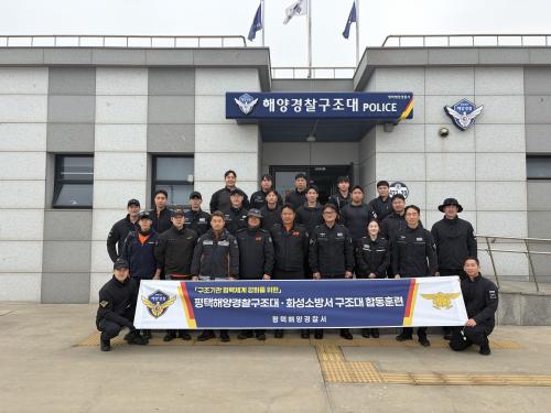 [½Åµ¿¾Æ¹æ¼Û= ÆòÅÃÇØ¾ç°æÂû¼­(¼­Àå ¿ìä¸í)´Â Áö³­ 26ÀÏ ÇØ¾ç »ç°í ´ëÀÀ ¿ª·® °­È­¸¦ À§ÇØ ÆòÅÃÇØ°æ ±¸Á¶´ë¿Í È­¼º¼Ò¹æ±¸Á¶´ë ¹× Á¦ºÎ¸¶¸®³ª Á÷¿øµéÀÌ Âü¿©ÇÑ °¡¿îµ¥ ÇÕµ¿ ÇØ»ó ±¸Á¶ ÈÆ·ÃÀ» ½Ç½ÃÇß´Ù°í ¹àÇû´Ù. À̹ø ÈÆ·ÃÀº °æ±âµµ ÆòÅýà Á¦ºÎ¸¶¸®³ª ÀÏ¿ø¿¡¼­ ÁøÇࡦ