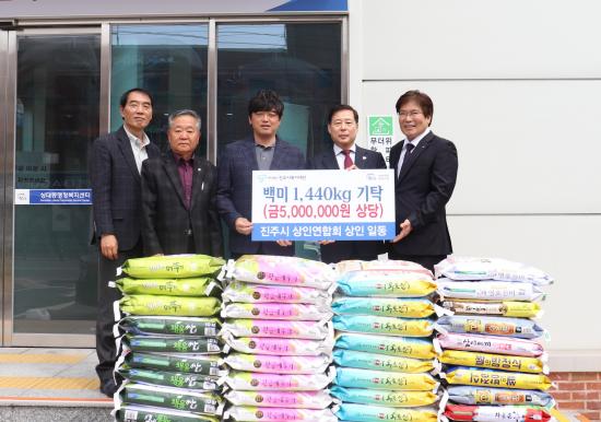 [½Åµ¿¾Æ¹æ¼Û °æ³²ÁøÁÖ=³²±Ã¿µ±â±âÀÚ] ÁøÁֽà »óÀο¬ÇÕȸ´Â ȸÀå ÀÌ¡¤ÃëÀÓ½ÄÀ» ¸Â¾Æ 6ÀÏ È¸¿øµéÀÇ ÃàÇÏ ¼Ó¿¡ Àü´Þ¹ÞÀº ¹é¹Ì 1,440kg(10kg, 144Æ÷, ȯ°¡¾× 500¸¸ ¿ø »ó´ç)À» Áö¿ªÀÇ ¾î·Á¿î ÀÌ¿ô¿¡°Ô Àü´ÞÇØ ´Þ¶ó¸ç ÁøÁֽú¹ÁöÀç´Ü¿¡ ±âŹÇß´Ù. À̹ø ±âŹÀº ÃàÇÏ È­È¯ ´ë¡¦