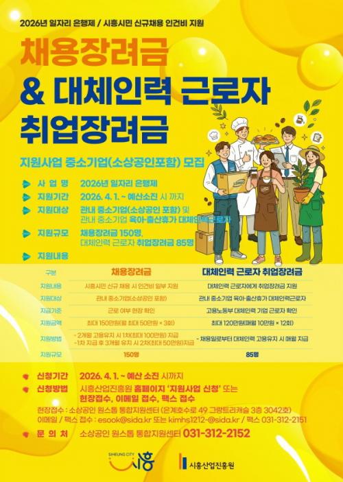 [½Åµ¿¾Æ¹æ¼Û ½ÃÈï½Ã=À̽ŵ¿±âÀÚ] ½ÃÈï½Ã´Â °ü³» Áß¼Ò±â¾÷ÀÇ ½Å±Ô ä¿ëÀ» ÃËÁøÇÏ°í ¾ÈÁ¤ÀûÀÎ °í¿ë âÃâÀ» À§ÇØ ¡®2026³â ÀÏÀÚ¸® ÀºÇàÁ¦¡¯ »ç¾÷ Âü¿©ÀÚ ¸ðÁýÀ» 4¿ù 1ÀϺÎÅÍ ½ÃÀÛÇÑ °¡¿îµ¥ ¿¹»ê ¼ÒÁø ½Ã±îÁö ÁøÇàÇÑ´Ù. ¡®ÀÏÀÚ¸® ÀºÇàÁ¦¡¯´Â °ü³» ±â¾÷ÀÇ Àη³­°ú ±¸Á÷ÀÚ¡¦