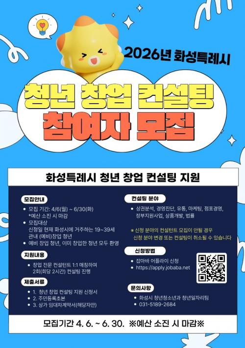 È­¼ºÆ¯·Ê½Ã,¡®2026 û³â â¾÷ ÄÁ¼³ÆÃ Áö¿ø»ç¾÷¡¯... 6¿ù 30ÀϱîÁö ¸ðÁý